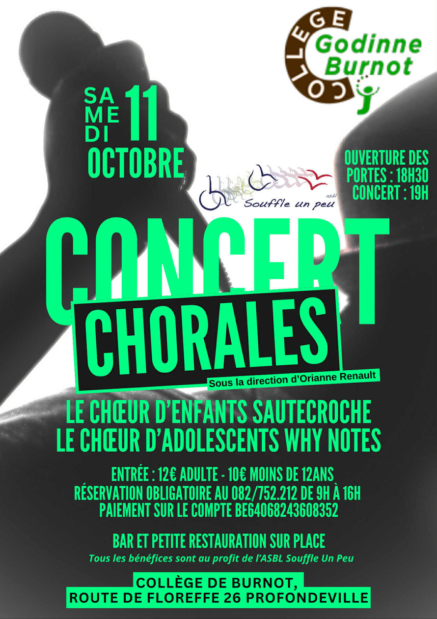Un concert au profit de l’Asbl Souffle Un Peu aura lieu le 11 octobre au Collège Burnot de Profondeville.